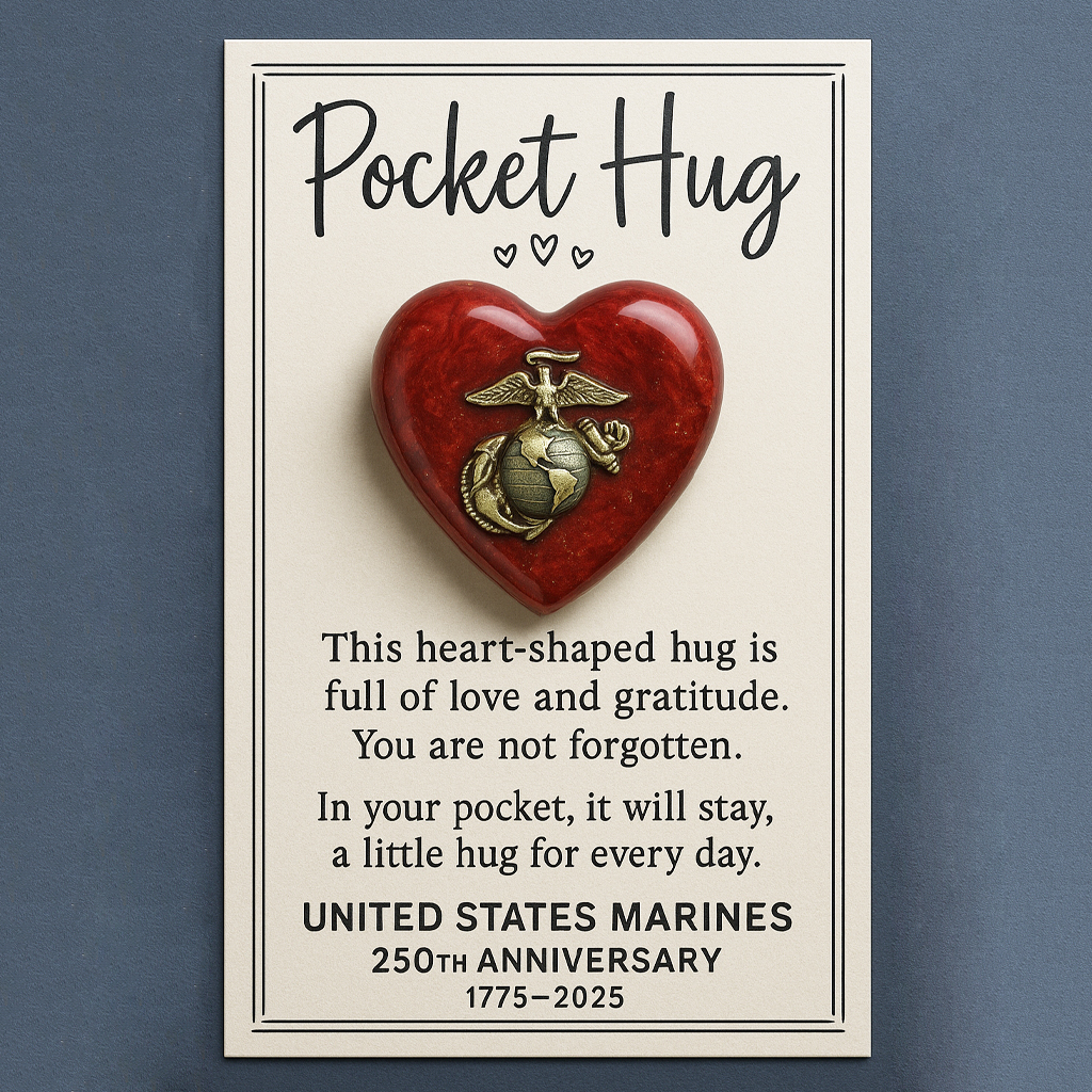 I now craft each of these Marine Corps commemorative Pocket Hugs by hand in my garage workshop,